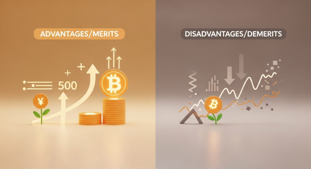 私の体験談も踏まえ、500円という超少額でビットコインに投資することのメリットとデメリットをまとめました。
