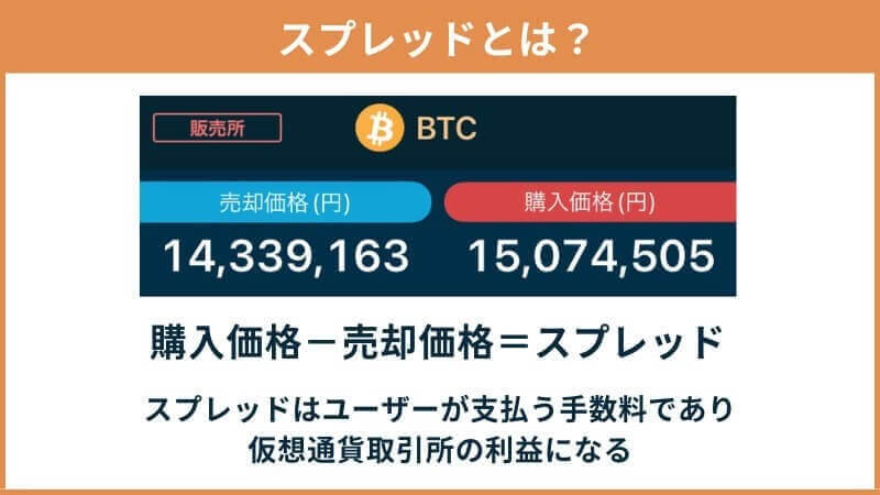 スプレッドとは、仮想通貨の「買値(購入価格)」と「売値(売却価格)」の差額のこと