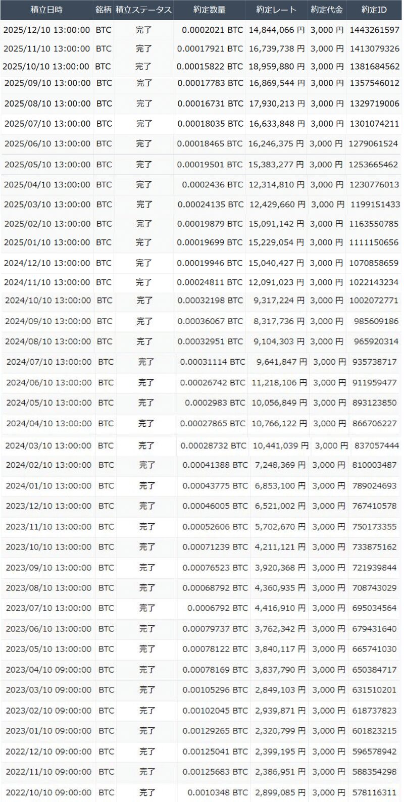 2022年10月にビットコイン積立投資を開始し2025年12月10日で39回目の積み立てが完了しました。