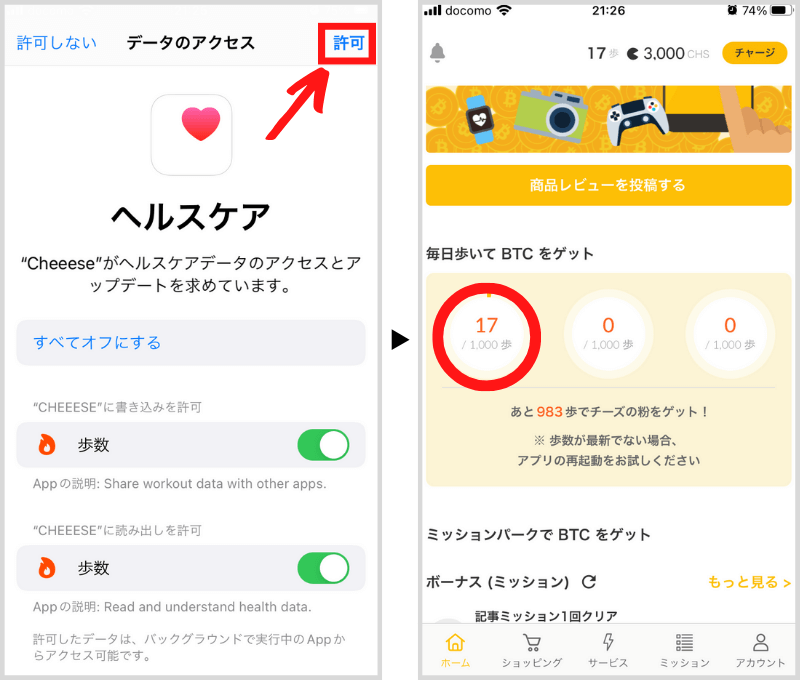 歩くだけでビットコインが貯まるCheeeseっていうアプリがあるみたい!早く始めたいから使い方を教えて!