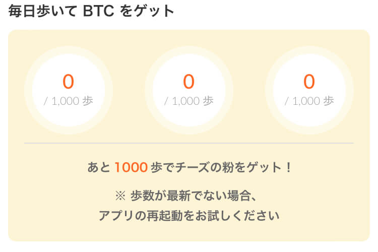 アプリを起動して歩くだけで、自動的に歩数がカウントされ、一定の歩数ごとにビットコインが付与されます。