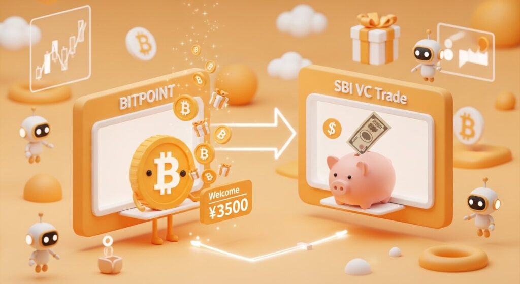 まずはメインの窓口でビットコインをもらい、サブの窓口で「さらに投資に回せる現金」を確保しましょう。この順番が一番おトクです。