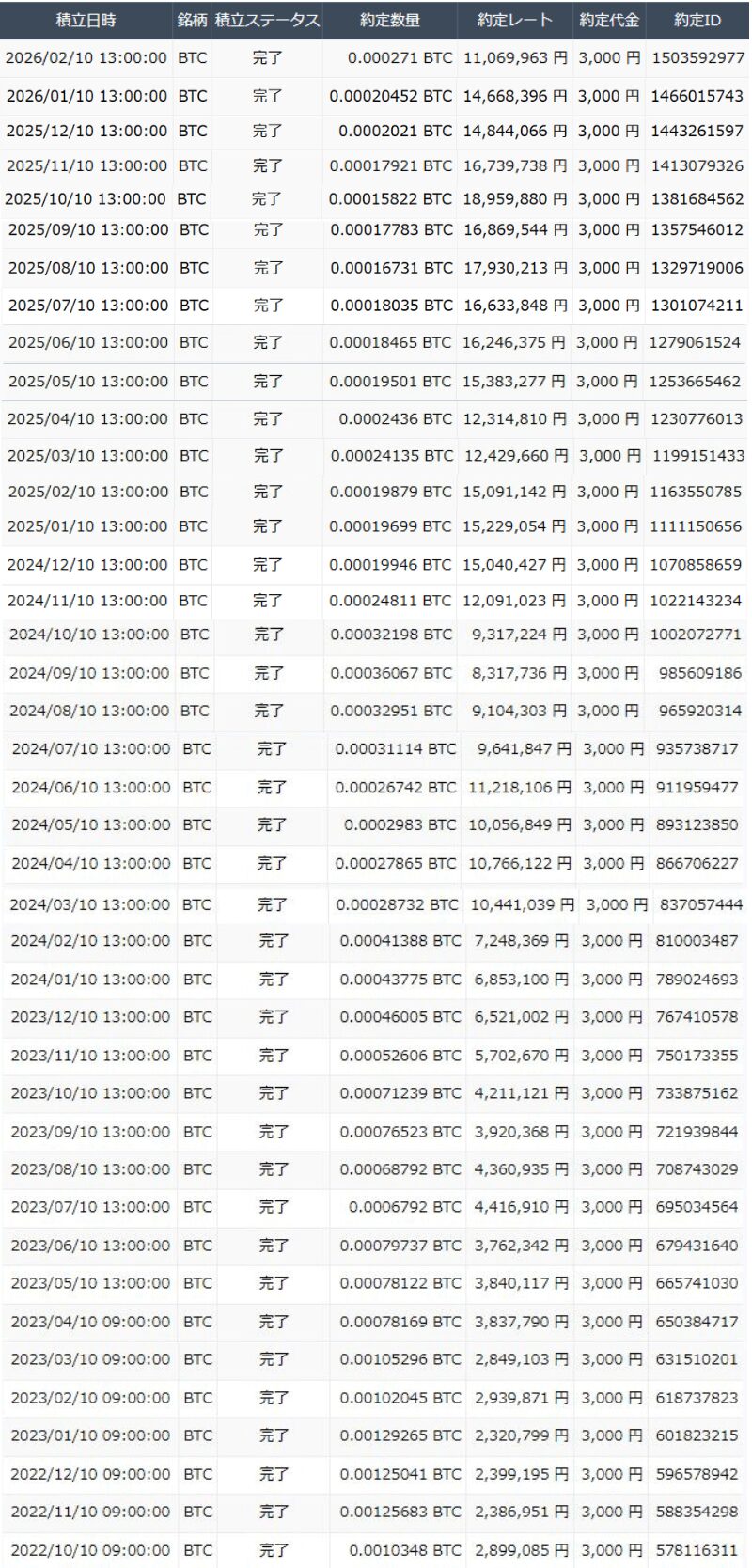 2022年10月にビットコイン積立投資を開始し2026年1月10日で40回目の積み立てが完了しました。