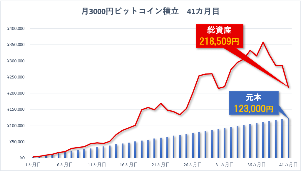 ビットコイン積立投資41ヶ月目の結果をブログで公開|利回り77.6%!