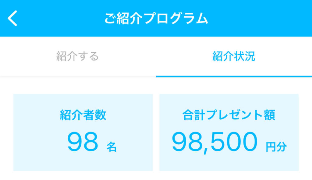 左:「紹介状況」をタップ