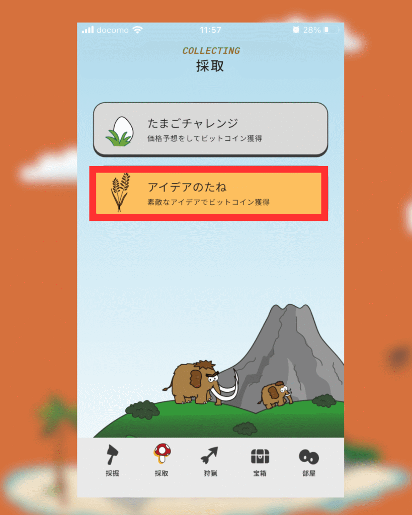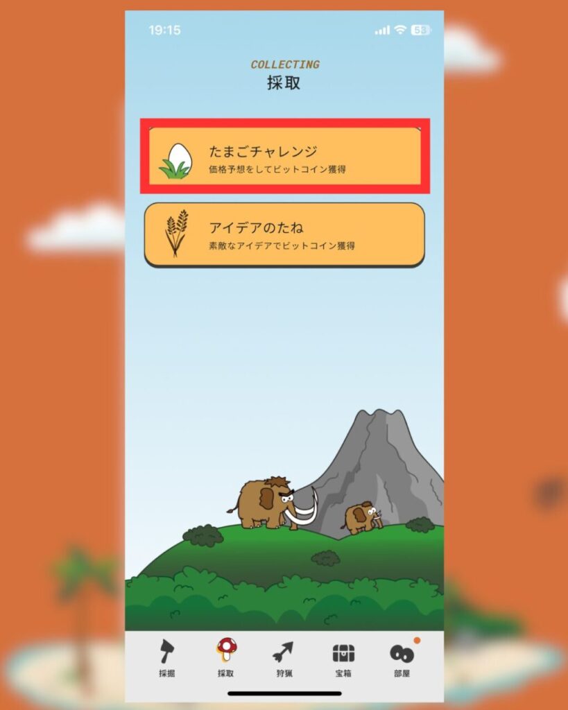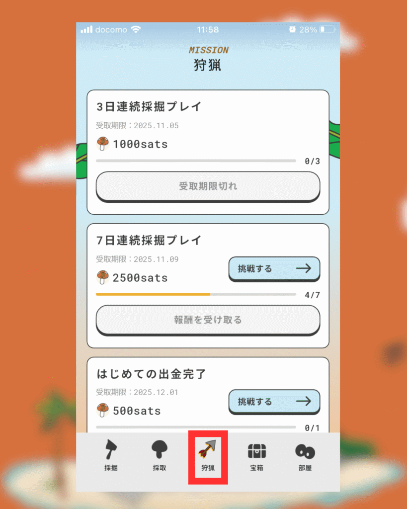 ▼「狩猟」をタップすると様々なミッションが表示されます