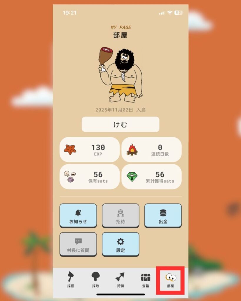 - 手順③ヤップアイランドの部屋の「出金」をタップ