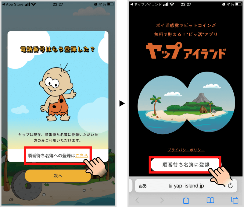 ヤップアイランドの始め方を画像付きで解説しますので参考にしてください。