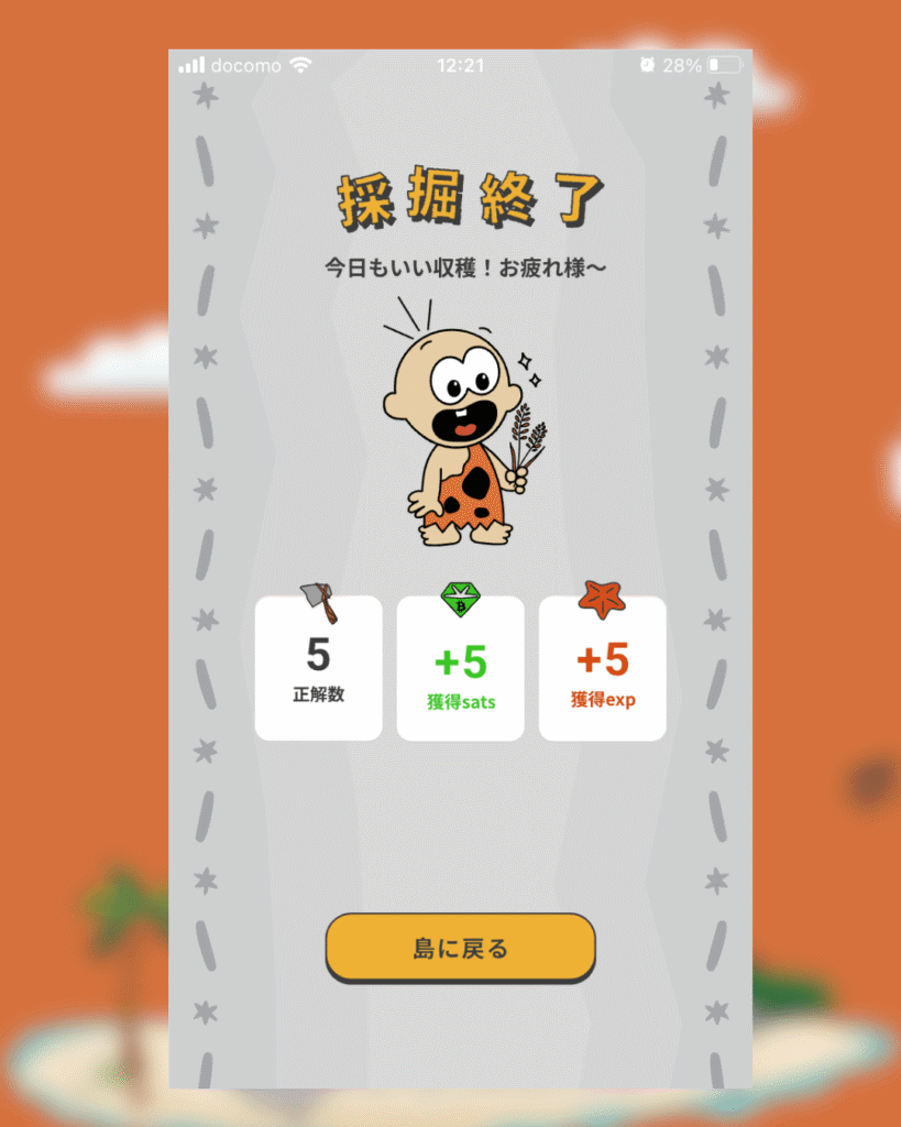 ユーザーは入島(登録)後、クイズに挑戦したり連続ログイン等のミッションを達成したりすることで報酬としてビットコインが貯まり、貯まったビットコインはウォレットを通じて実際に出金・利用可能とされています。