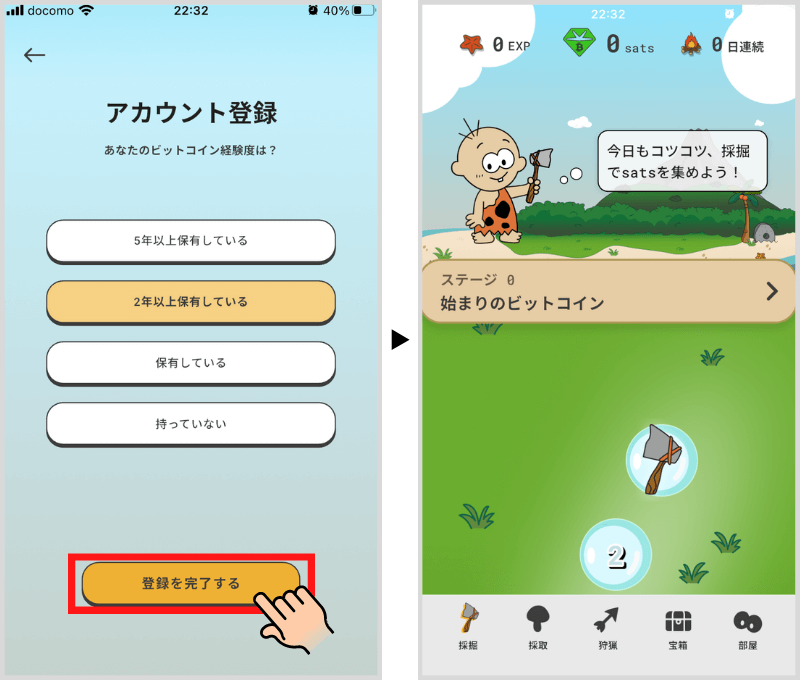 この記事では、アプリのダウンロードから登録までの詳しい始め方、クイズやミッションで効率的にビットコイン(sats)を稼ぐ方法を画像付きで解説しました。