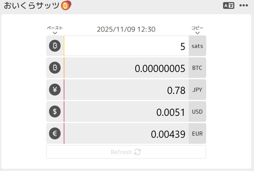 sats/BTC/JPYを計算するのに便利なサイト「おいくらサッツ」はこちらです